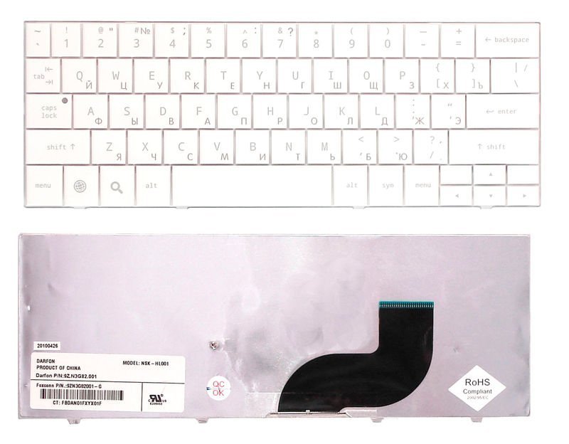 Біла клавіатура-аналог для HP Compaq AirLife 100 (Android Smartbook), сумісна з модулем RU‑розкладки (зазвичай без офіційного MPN, зазначається як "Russian RU layout"). Підтримує російську та англійську QWERTY‑розкладку, без підсвітки та монтажної рамки. Аналогічні модулі з EN layout можуть мати коди 595199‑001 або 613386‑001 (як для HP 2000‑серії). Ідеально підходить для заміни оригінальної клавіатури.