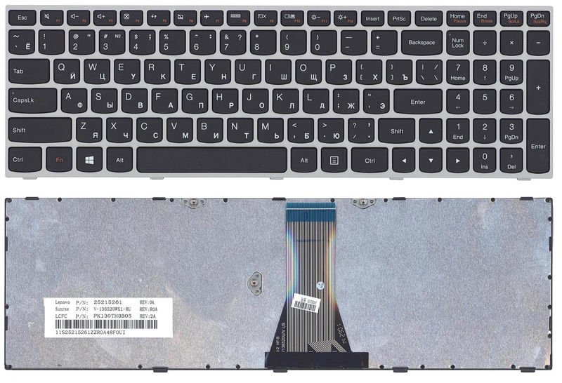- Клавіатура для ноутбука Lenovo IdeaPad G50-70, G50-30, чорна, сіра рамка, RU-