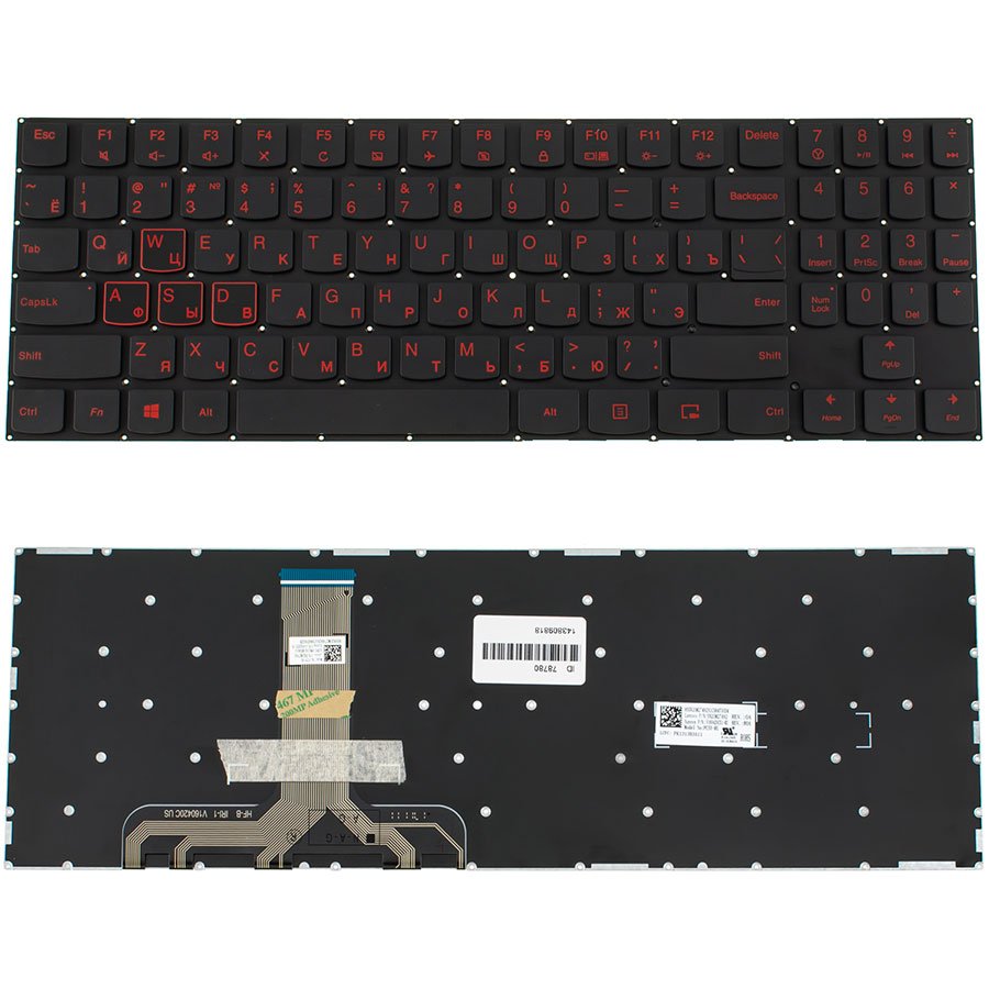 Оригінальна клавіатура для ноутбука LENOVO Legion Y520-15. Має російську розкладку, чорний колір і постачається без фрейма. Підсвітка — RED. Якісний і надійний варіант для щоденного використання та заміни штатної клавіатури.