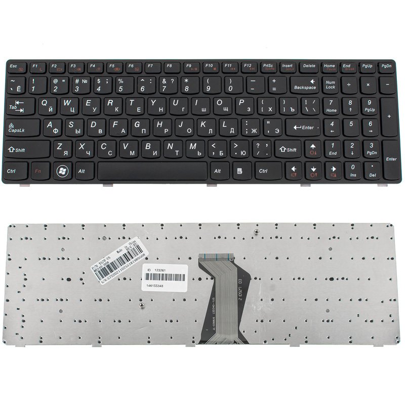 Клавіатура для ноутбука Lenovo Y570 — RU-розкладка, чорна, з чорною рамкою