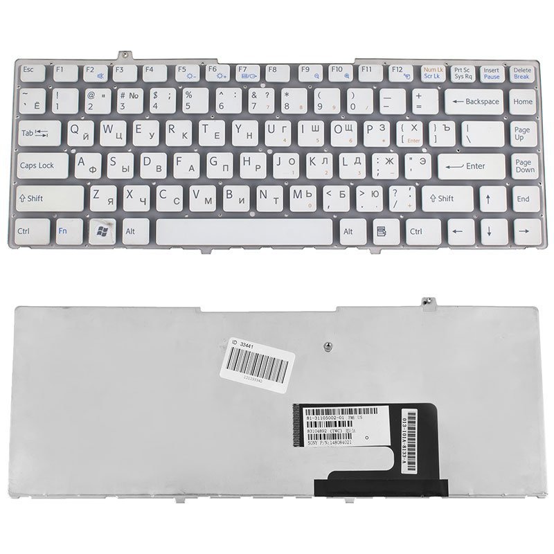Клавіатура для ноутбука Sony (VGN-FW series) — біла, без фрейма, російська розкладка