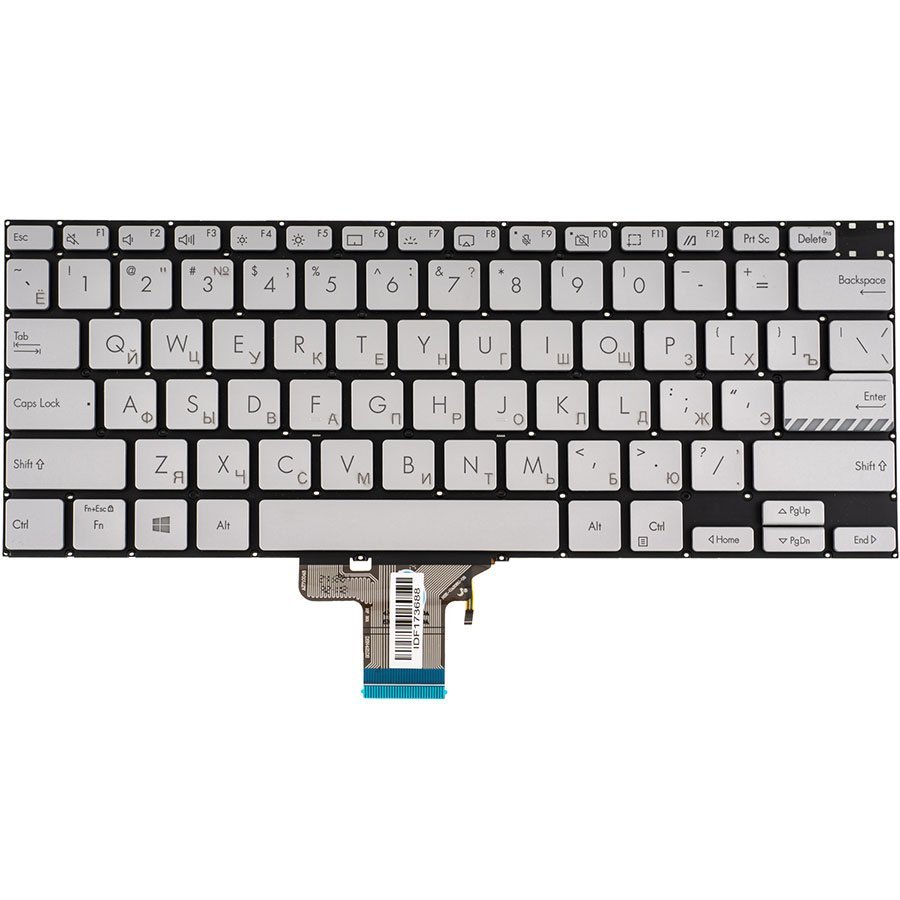 - Клавіатура до ноутбуку ASUS (X3400, X7400 серій), російська розкладка, сріблястий колір, без фрейму, підсвітка клавіш-