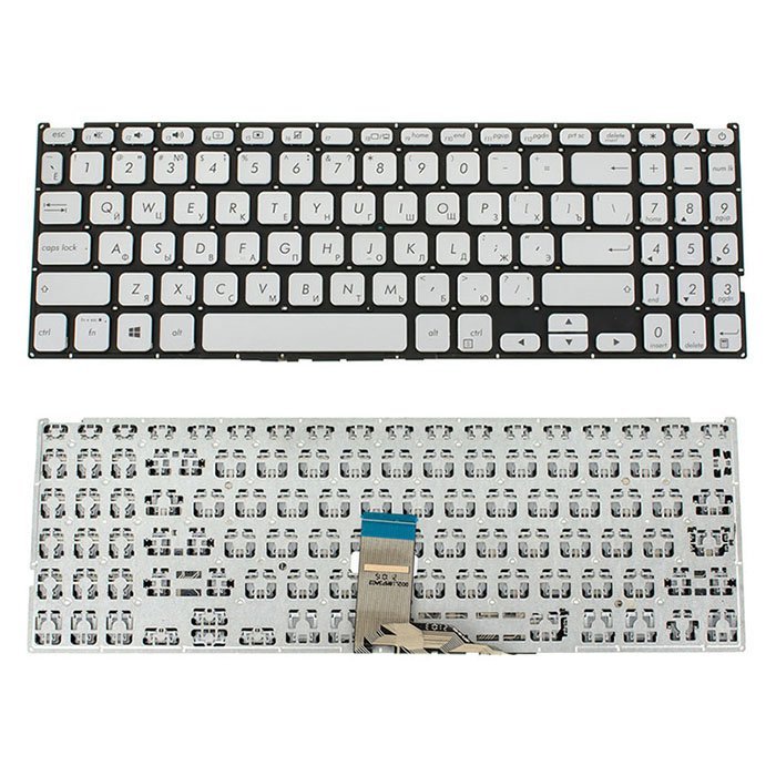 Клавіатура до ноутбуку ASUS (X512 серій) російська розкладка, сріблястий колір, без фрейму — оригінальна/сумісна заміна для моделей лінійки ASUS X512. Ідеально підходить для відновлення працездатності клавіатури після механічних пошкоджень, пролиття рідини або зношування клавіш.