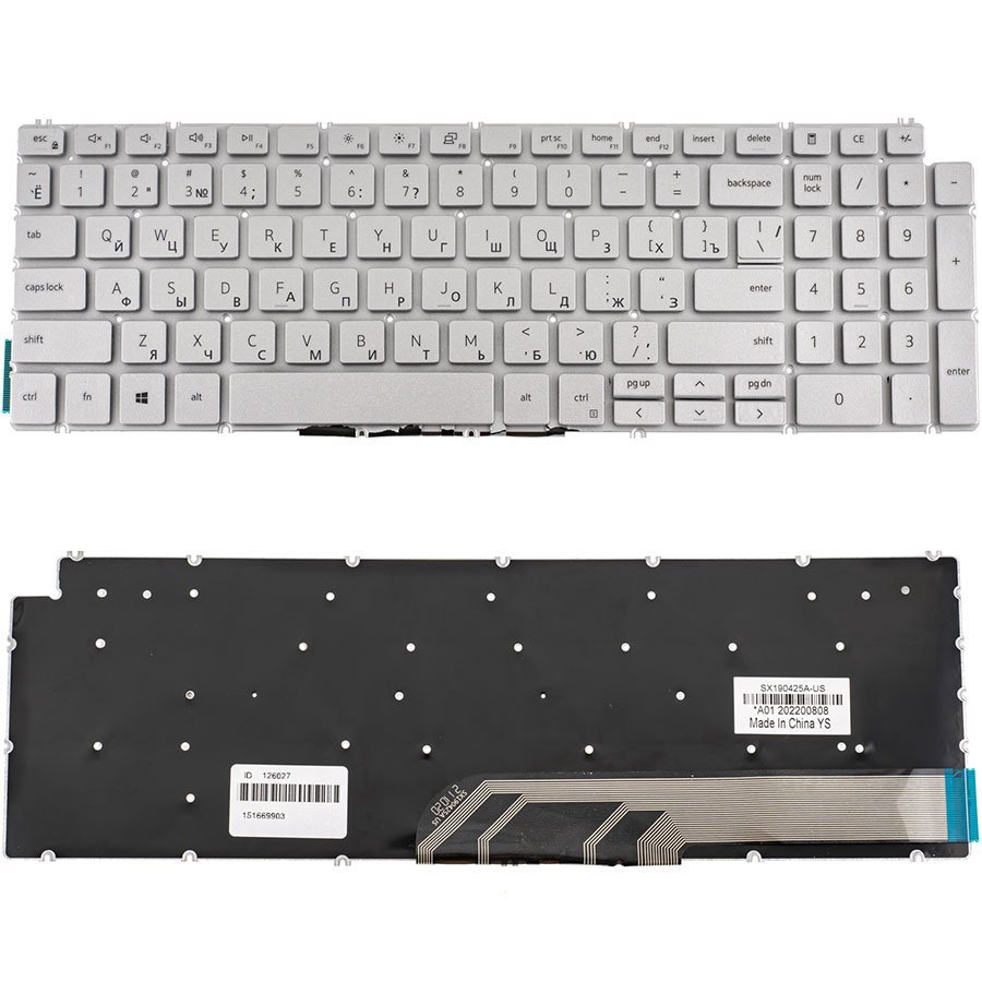 - Клавіатура до ноутбуку DELL (Inspiron: 5584), російська розкладка, сріблястий колір, без фрейму — це практична, естетична і сумісна деталь для швидкої заміни клавіатурного модуля.