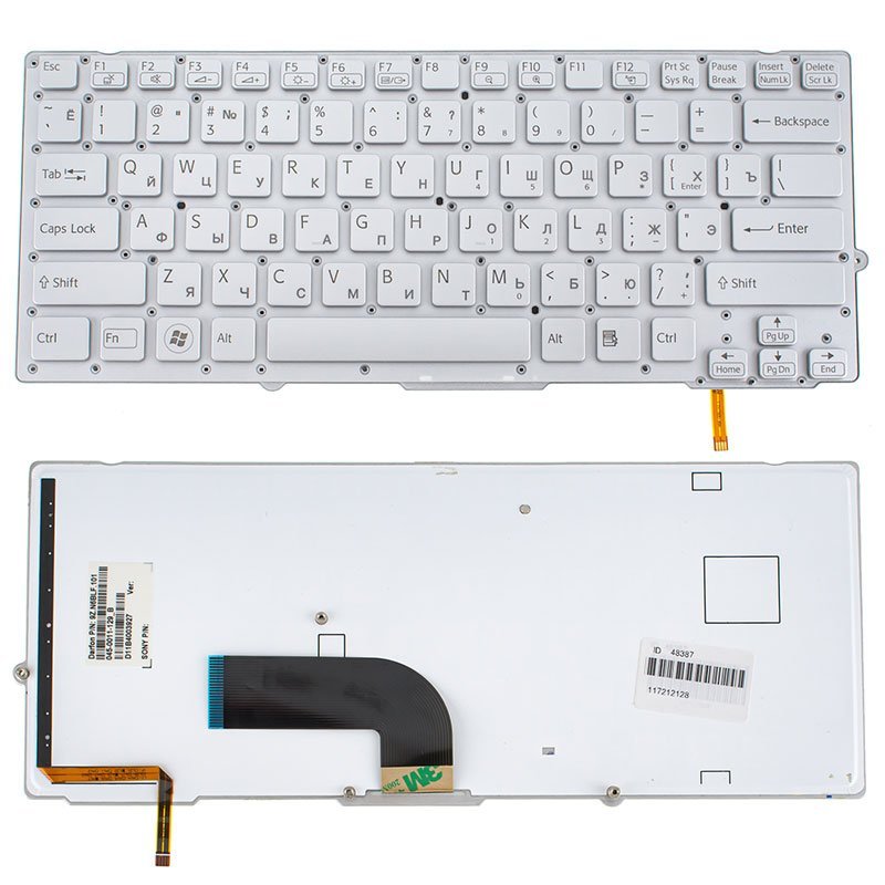 Клавіатура до ноутбука SONY (VPC-SB, VPC-SD серій) російська розкладка, сріблястий колір, без фрейму, підсвітка клавіш — практичне і естетичне рішення для швидкої та надійної заміни, яке повертає комфорт роботи з ноутбуком.