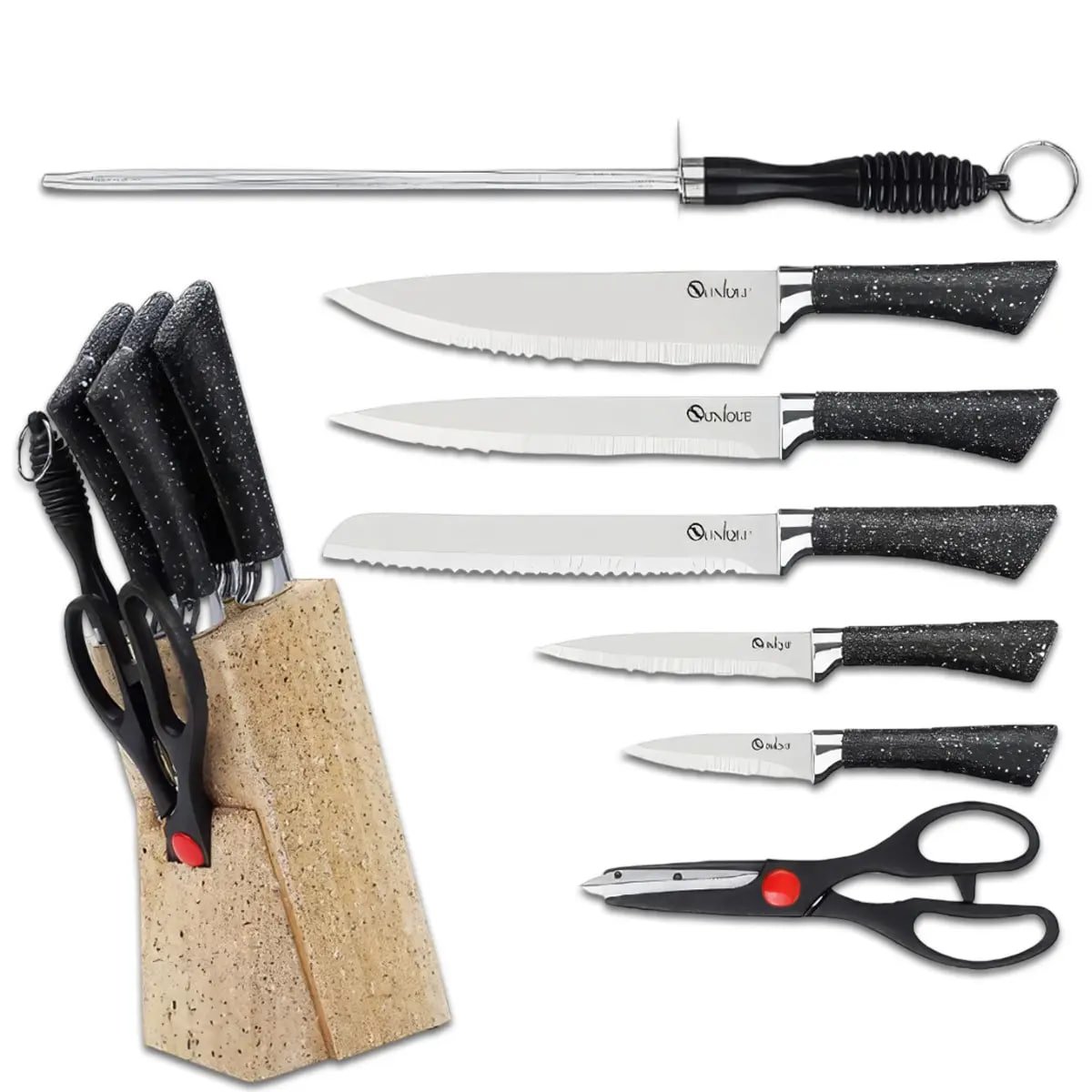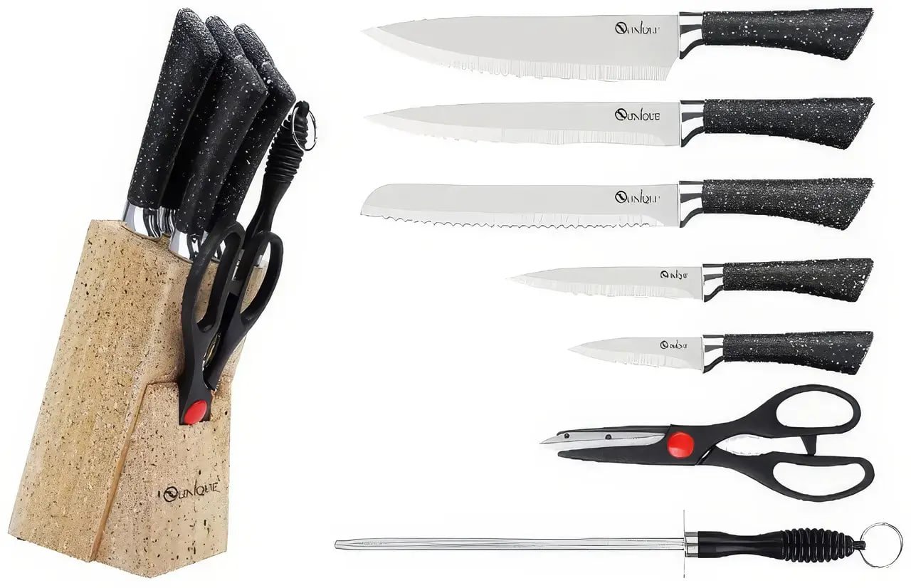 Кухонний набір ножів UNIQUE UN-1837, чорний комплект ножів для кухні