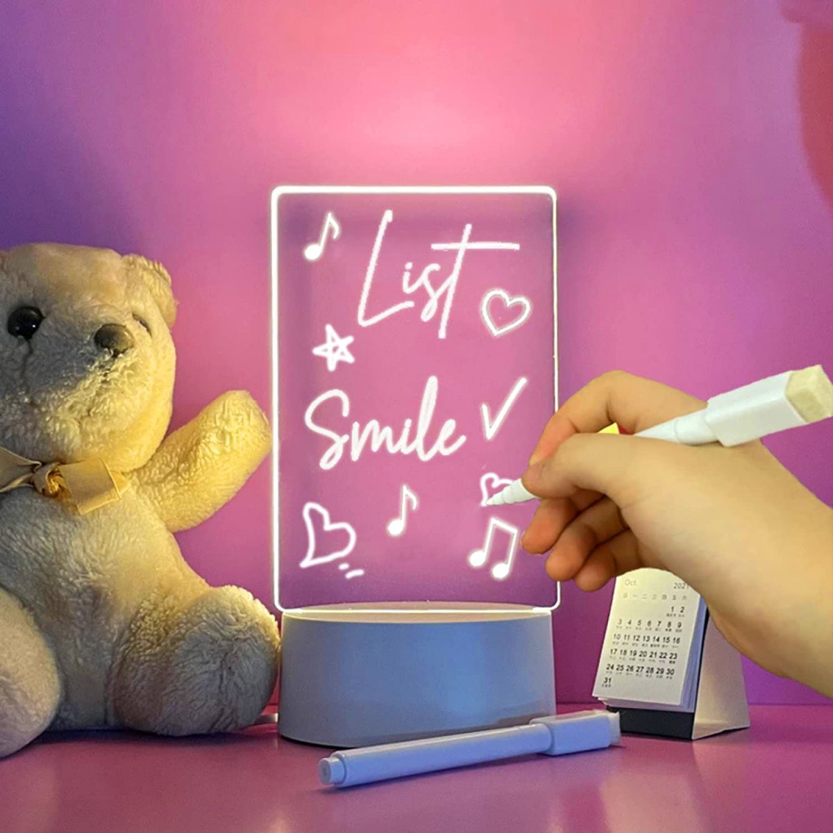 Нічник – планер з підсвіткою — це багаторазова світлодіодна дошка для записів та нотаток, яка поєднує функції нічника та зручного планера. Підсвітка робить написи добре помітними у темний час доби, а багаторазовий формат дозволяє швидко оновлювати список справ, нагадування або плани на день. Підходить для дому, офісу чи дитячої кімнати.