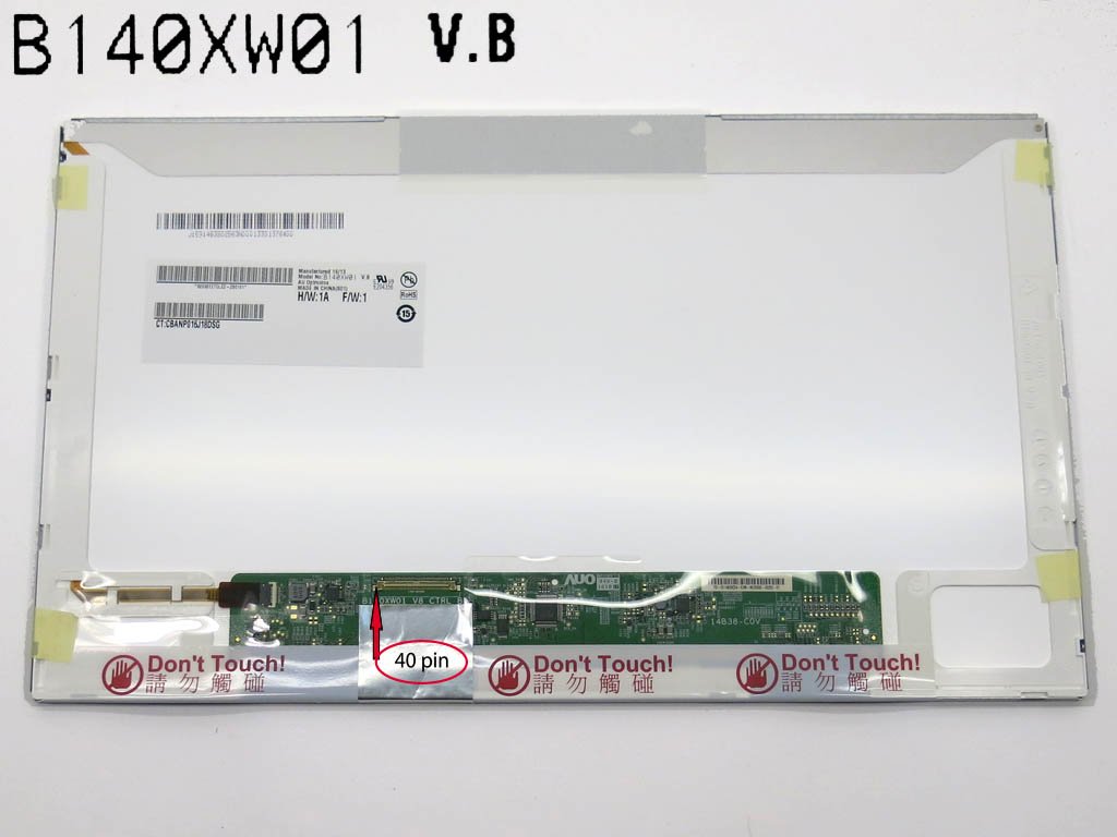 Матриця AUO B140XW01 V.B — 14.0" глянцевий дисплей для ноутбука з роздільною здатністю 1366×768. Якісна та надійна матриця для щоденного використання, підходить для заміни штатного екрана за умови сумісності за параметрами.