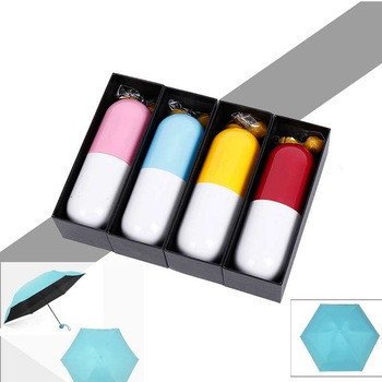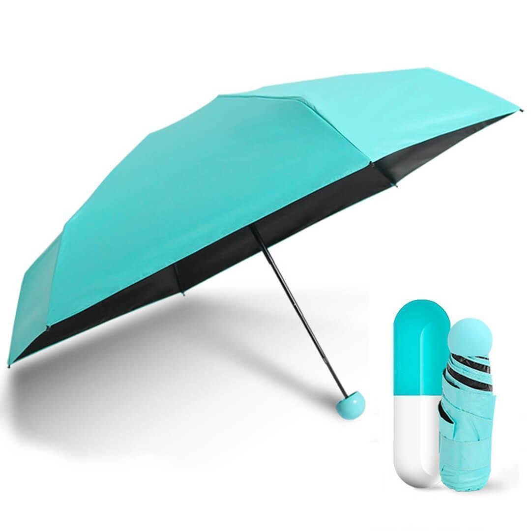 Міні парасолька-капсула — компактна парасолька у зручному футлярі-капсулі, яку легко носити з собою щодня в сумці або рюкзаку. Практичний формат для міста та поїздок: футляр допомагає зберігати речі сухими після використання. Це якісний і надійний аксесуар для регулярного використання.