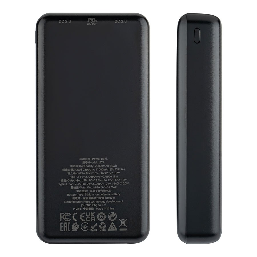 Мобільна батарея HOCO J87A Tacker 20000mAh, чорна (6931474761033)