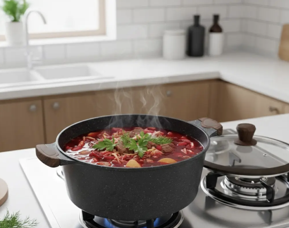 Набір підійде для щоденних задач: варіння, тушкування та приготування гарнірів і супів. Якісний і надійний варіант для дому, коли важливі зручність, акуратний вигляд і практичність у кожній деталі.