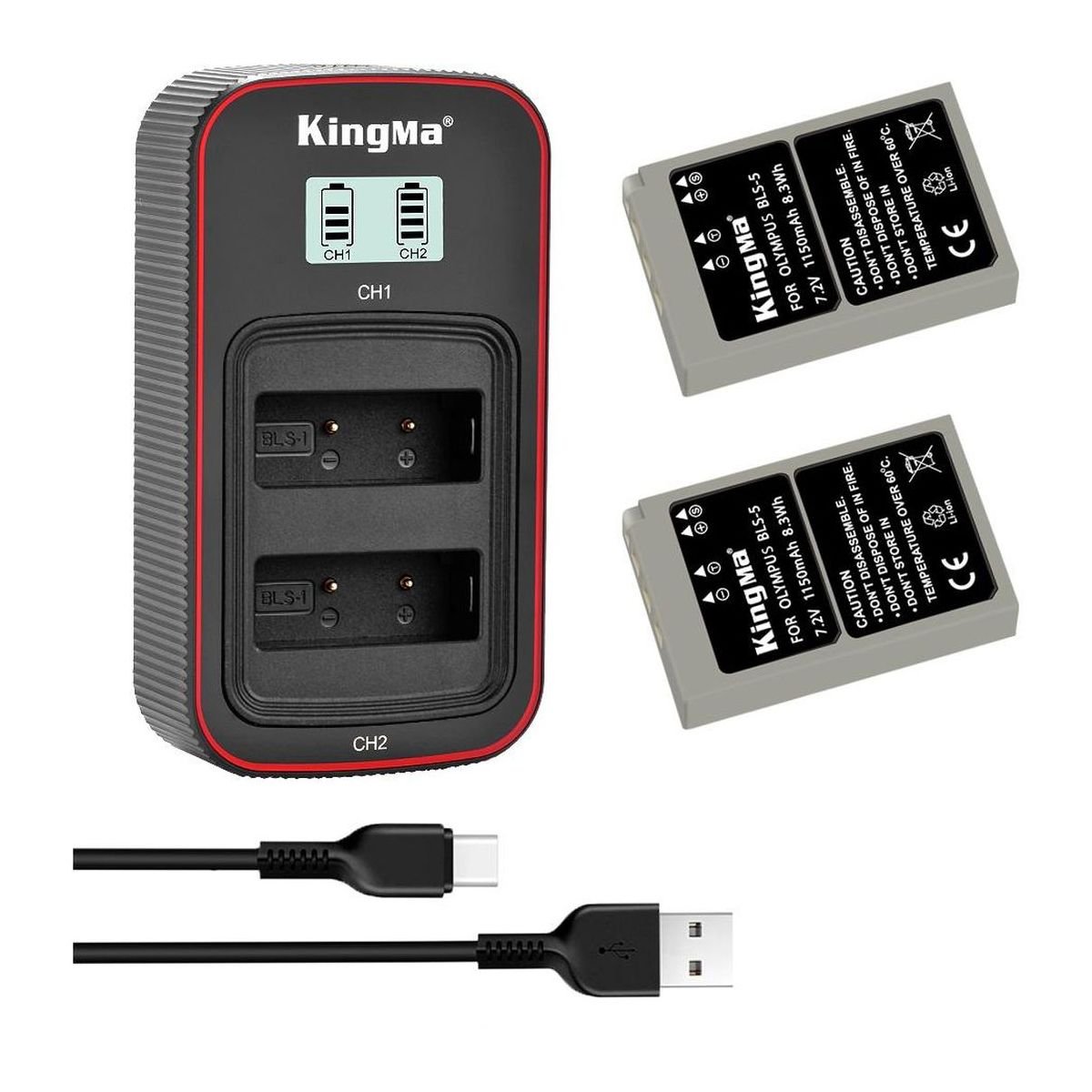 Набір KingMa BLS-5: 2 акум + зарядка на 2, для Olympus E-PL2/E-PL5/E-PM1/E-PM2