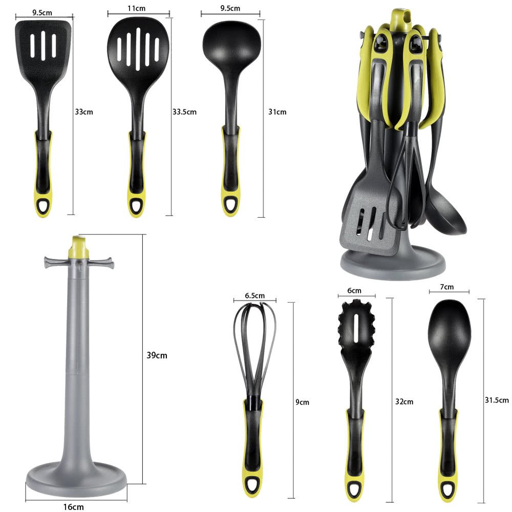 Набір силіконового кухонного приладдя на підставці, 7 предметів для антипригарного посуду