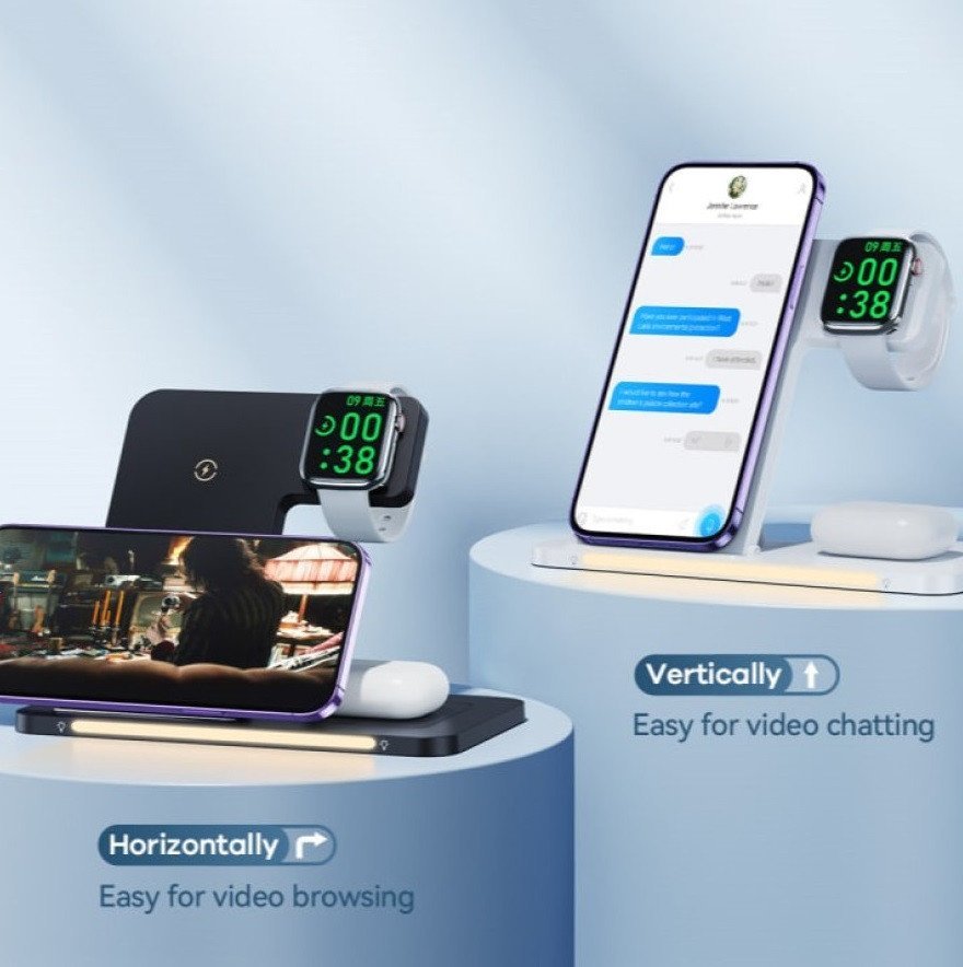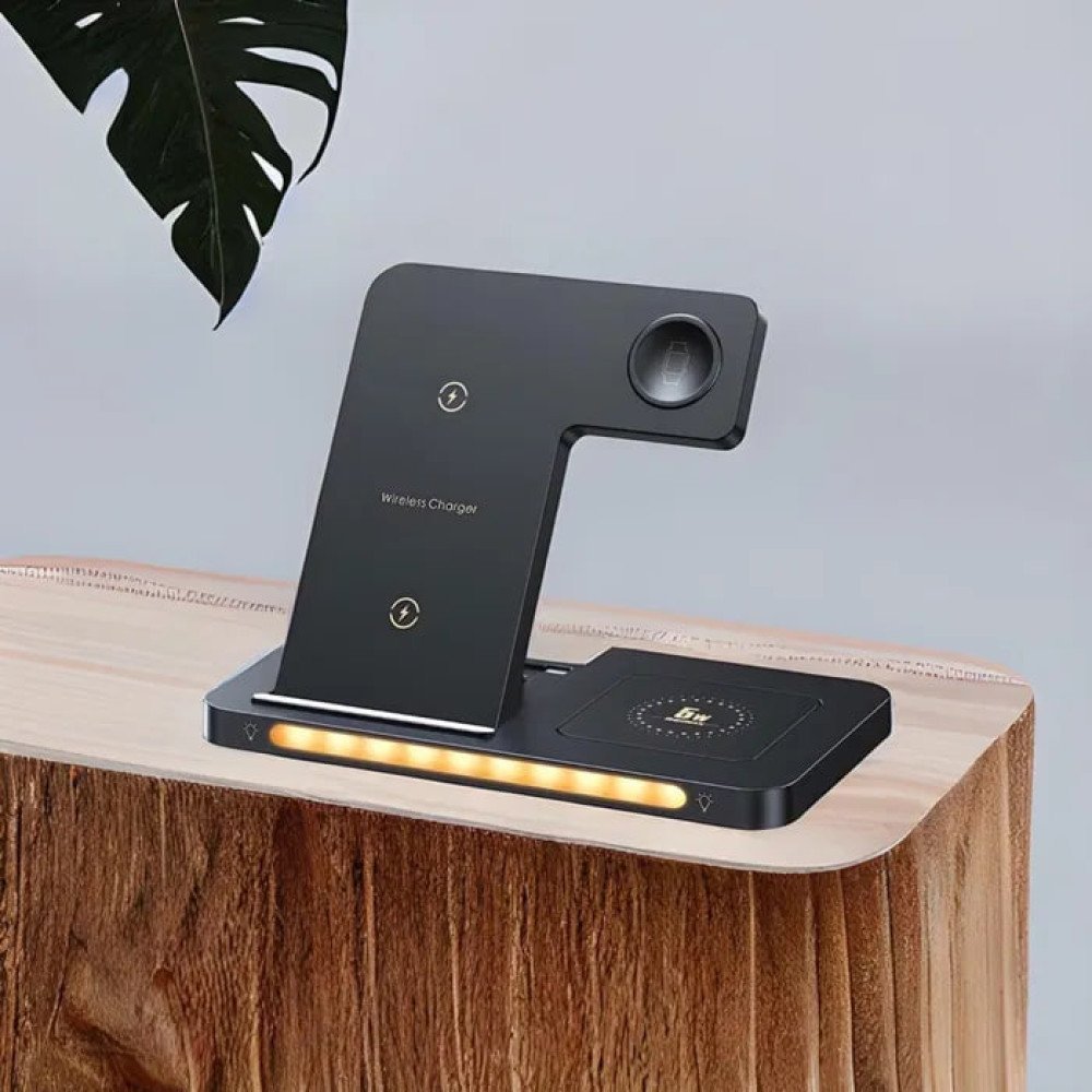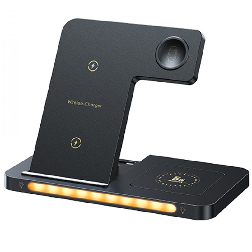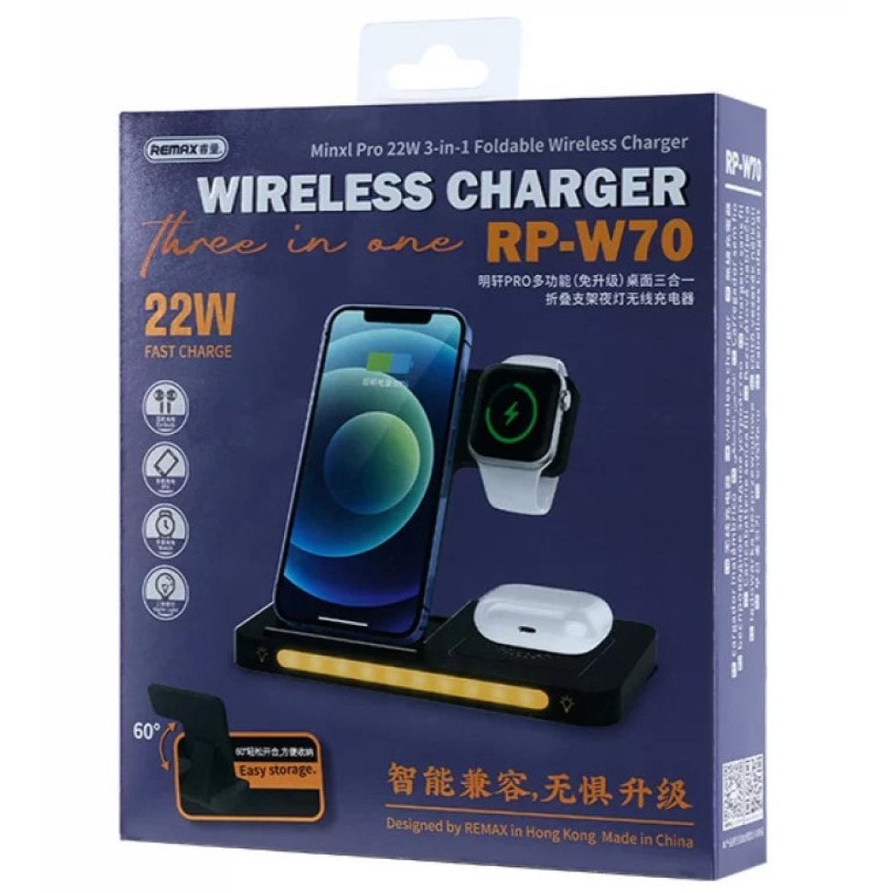- Настільна безпровідна зарядка чорна 3в1 розкладна + нічник REMAX RP-W70 3-in-1 22W-