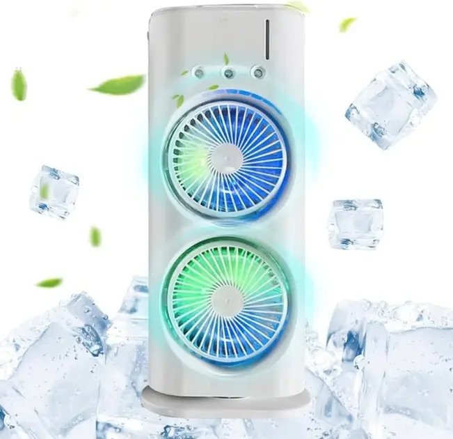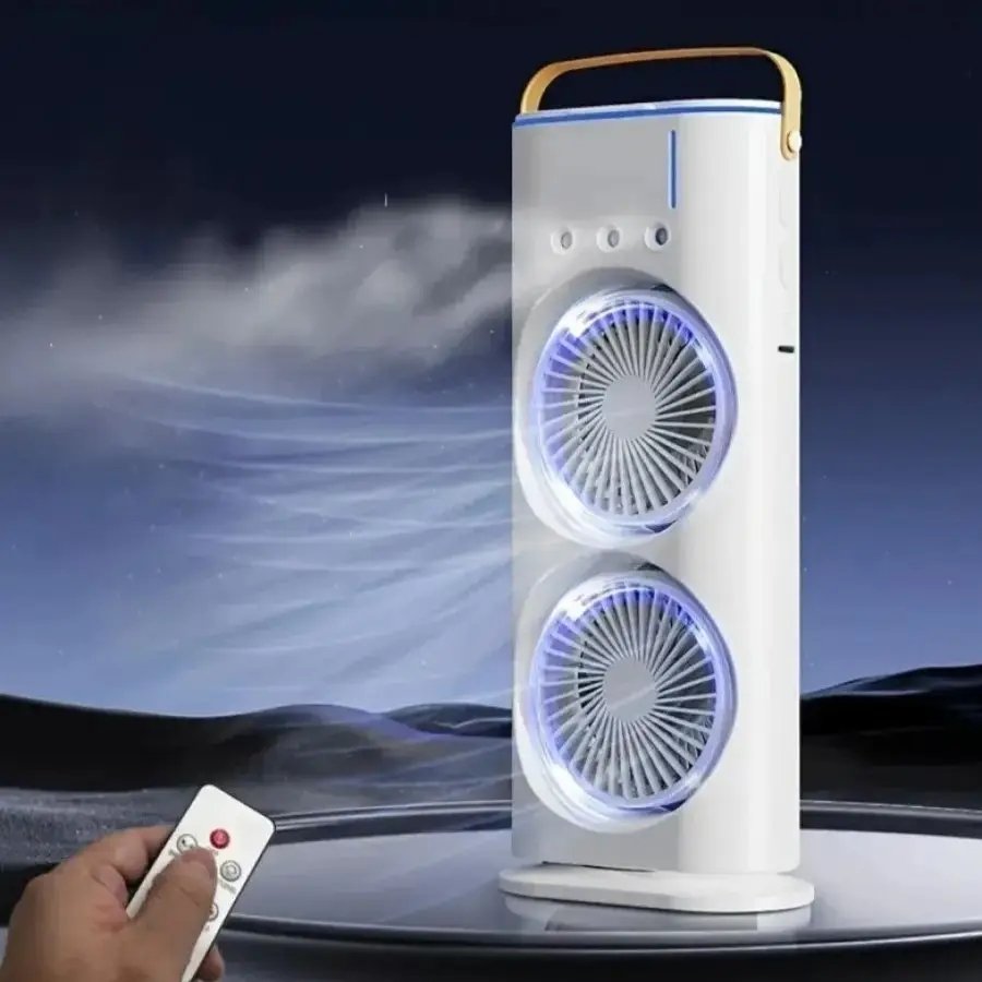 Настільний вентилятор 3-в-1: зволоження, підсвічування, акумулятор 4000 мА·год, подвійний
