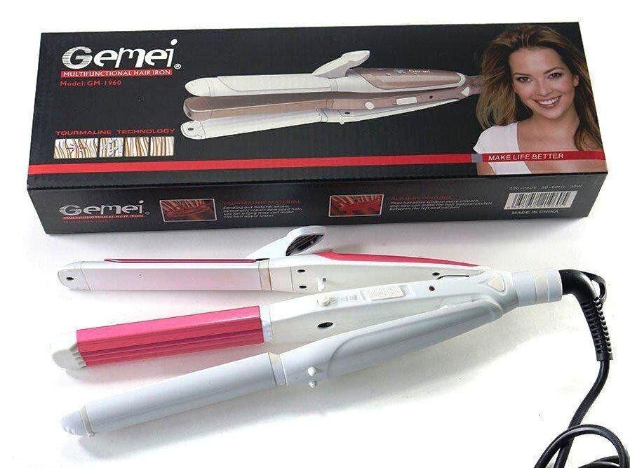 Праска-випрямляч для волосся Gemei GM-1960 2в1: гофре та плойка