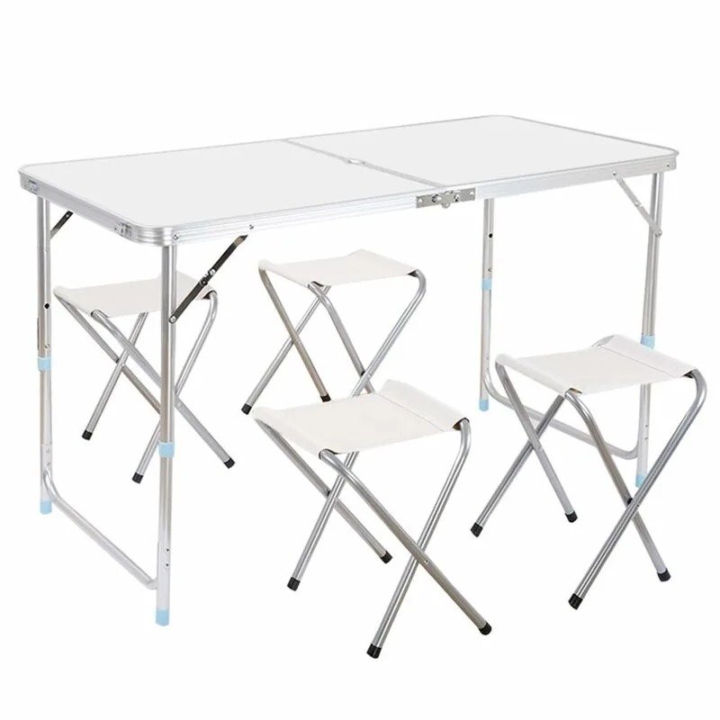Розкладний стіл з 4 стільцями Folding Table — практичний комплект для пікніка, риболовлі та дачі. Стіл швидко складається у формат стіл-чемодан, зручний для транспортування та зберігання. Підійде для щоденного використання завдяки простій, надійній конструкції та продуманому формату набору.