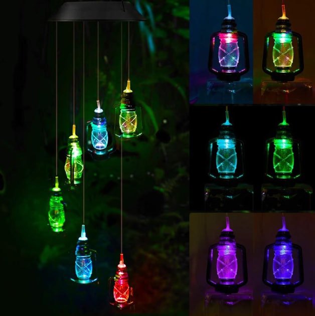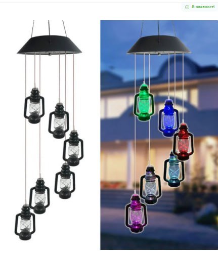 ```Світильник садовий ліхтарі різнокольорові — підвісний декоративний LED ліхтар на сонячній батареї для освітлення та створення затишної атмосфери у дворі, саду, на терасі чи балконі. Працює від сонячної енергії, не потребує підключення до електромережі та зручний для щоденного використання.