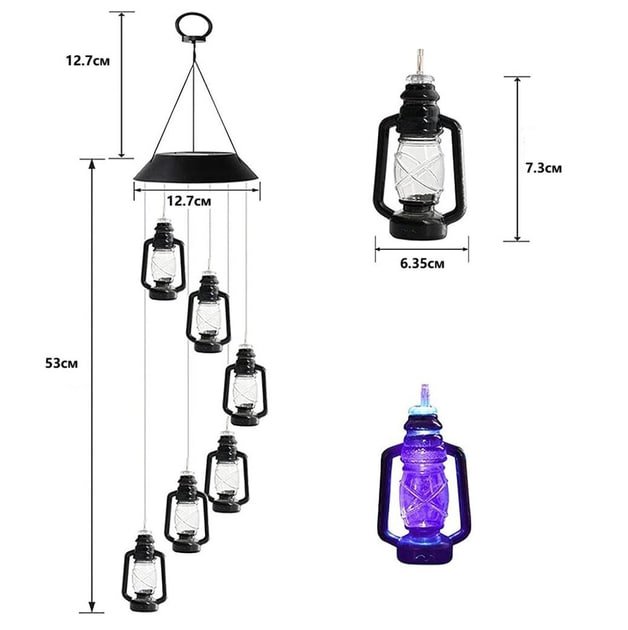 Світильник садовий ліхтарі різнокольорові — підвісний декоративний LED ліхтар на сонячній батареї для освітлення та створення затишної атмосфери у дворі, саду, на терасі чи балконі. Працює від сонячної енергії, не потребує підключення до електромережі та зручний для щоденного використання.