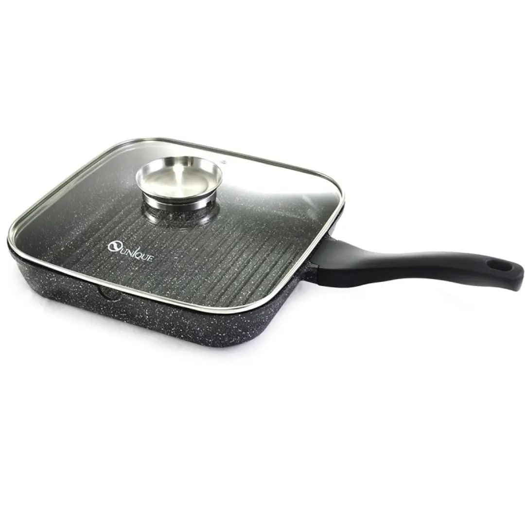 Сковорода-гриль UNIQUE UN-4012 28 см, прямокутна, гранітне покриття, для готування без жиру
