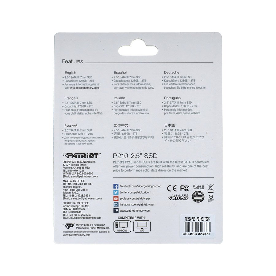 SSD Patriot P210 Series 1TB (P210S1TB25) — 2.5" твердотільний накопичувач для швидкого завантаження системи, програм і щоденної роботи. Оснащений сучасним контролером SATA 3 та пам’яттю 3D TLC, забезпечує стабільну продуктивність і надійність для повсякденного використання в ноутбуках і ПК.