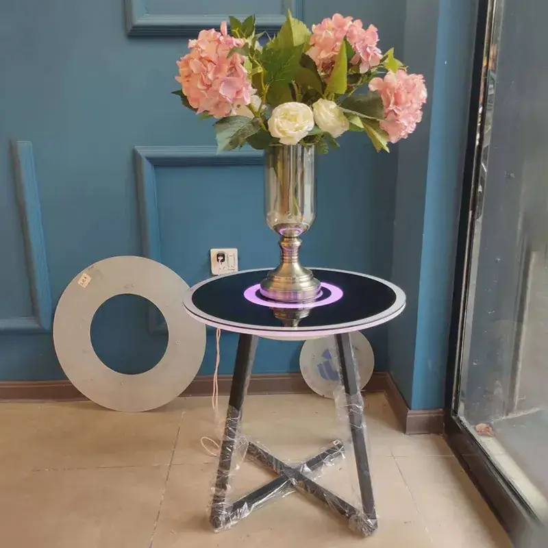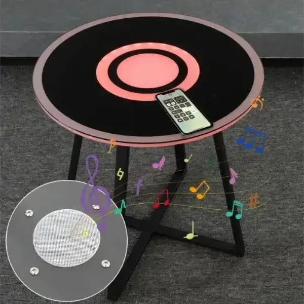 Світлодіодний смарт-столик із загартованого скла: Bluetooth, бездротова зарядка, сенсорний екран, музика