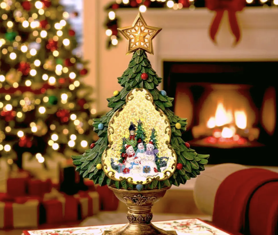 Святковий LED-світильник ялинка XHF-8002 з ефектом падаючого снігу та музикою