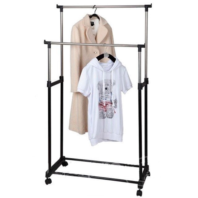 Телескопічна подвійна стійка-вішалка Double Pole Clothes Horse — зручне рішення для організації одягу та взуття вдома, у гардеробній або в магазині. Подвійна конструкція з телескопічним регулюванням дозволяє раціонально використовувати простір, а нижня зона підходить для розміщення взуття. Вішалка розрахована на щоденне використання та забезпечує надійне зберігання речей.
