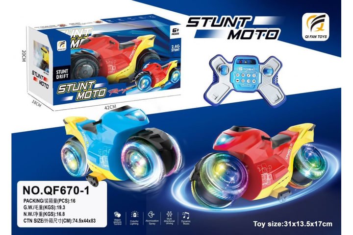Трюковий радіокерований мотоцикл SmartUs QF670-1 з LED-підсвічуванням та ефектом диму