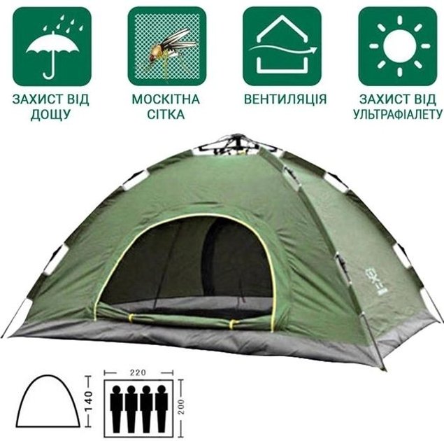Туристичний намет-автомат 220×220×150 см, 6-місний, хакі, з автоматичним каркасом
