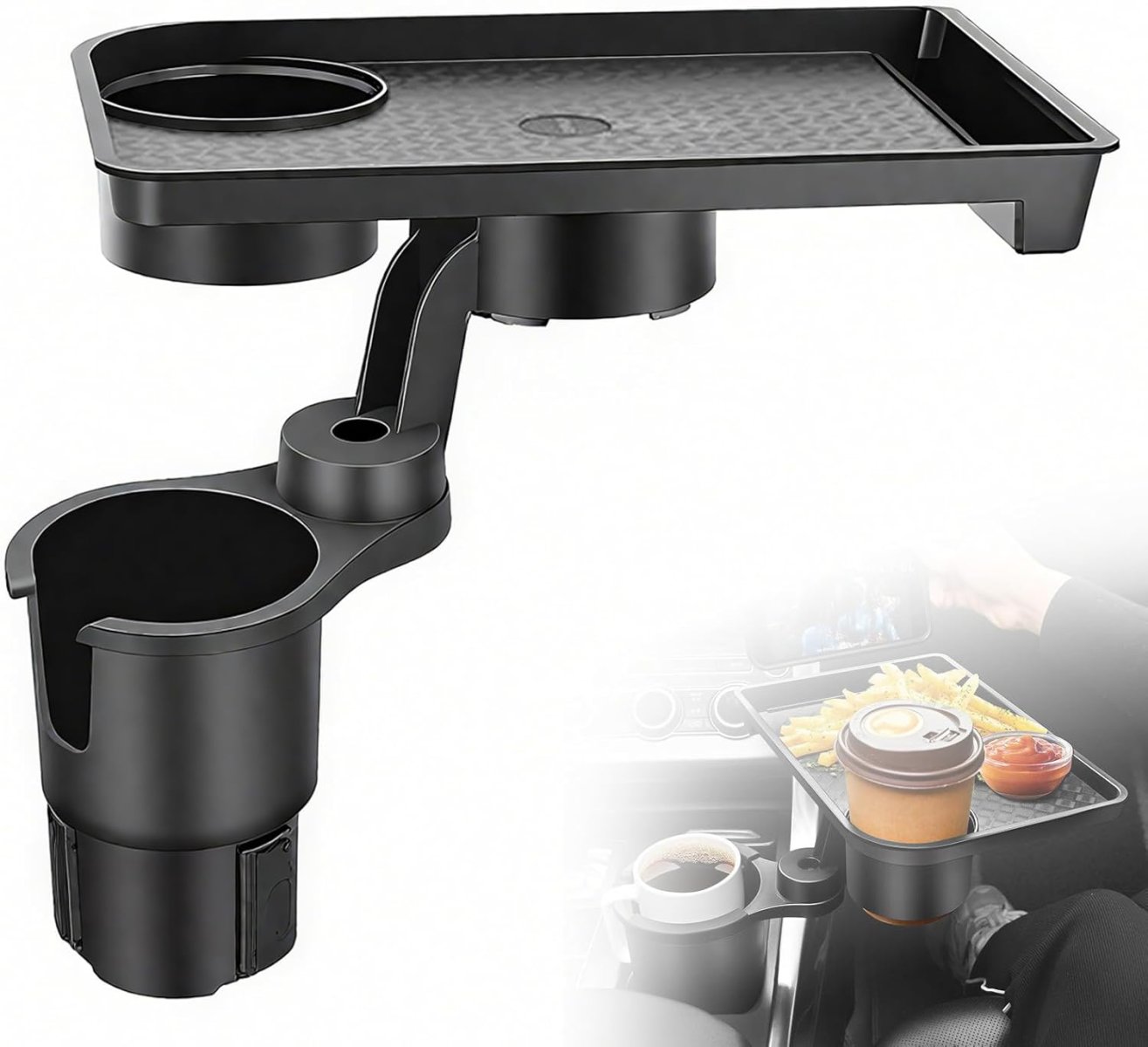 Універсальний автопідстаканник-піднос для їжі з подвійним тримачем для напоїв