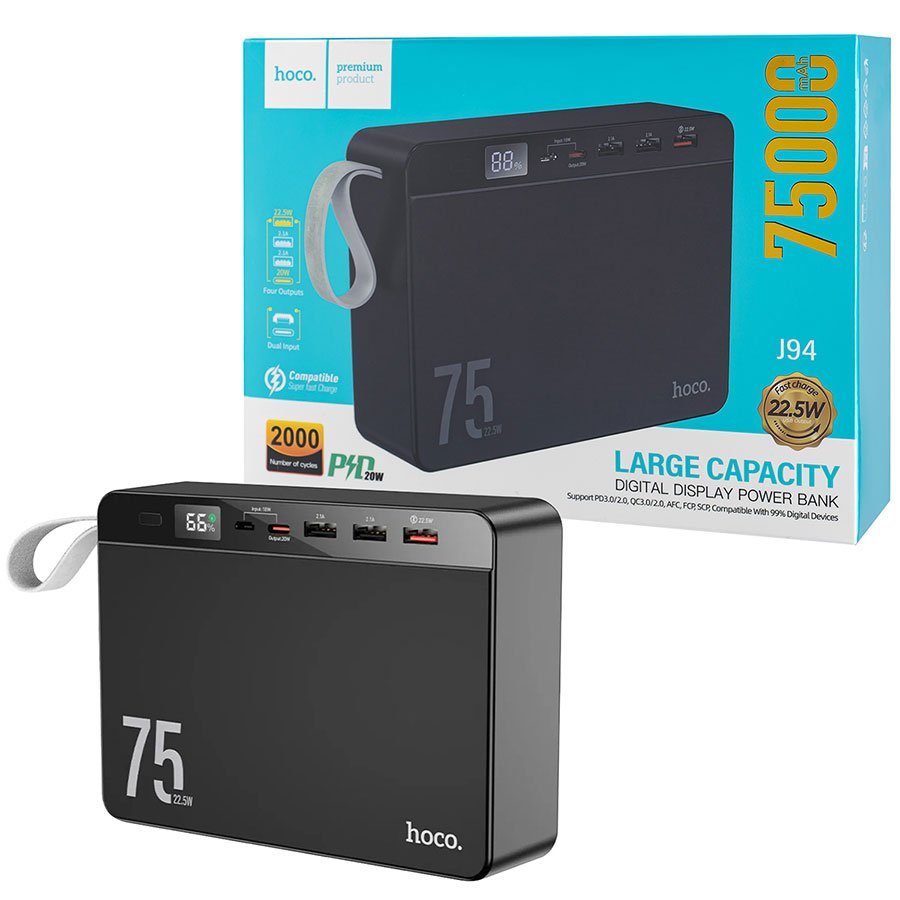 Універсальний павербанк HOCO J94 Overlord 75000mAh, 22.5W, чорний (6931474779175)