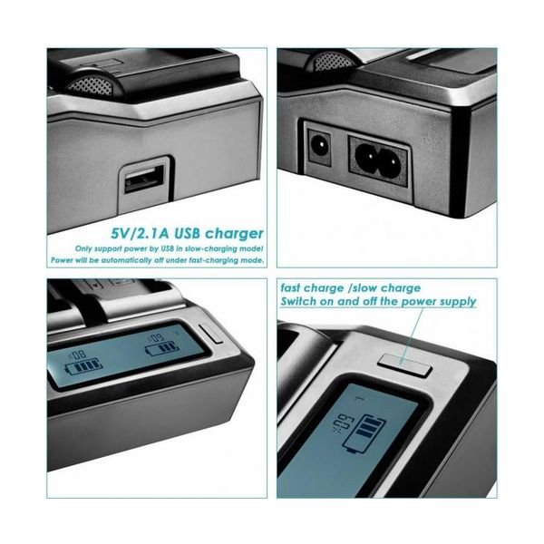 Інтелектуальний зарядний пристрій Smart Charger DC-LCD призначений для одночасного заряджання двох акумуляторів Sony NP-FH50 NP-FH70 NP-FH100. Сумісно із камерами Sony AC-VQH10, Alpha A230, Alpha A290, Alpha A330, Alpha A380, Alpha A390, Alpha DSLR-A230, Alpha DSLR-A290, Alpha DSLR-A330, Alpha DSLR-A380, Alpha shot DSC-HX1, Cyber-shot DSC-HX100, Cyber-shot DSC-HX200, DCR-DVD103