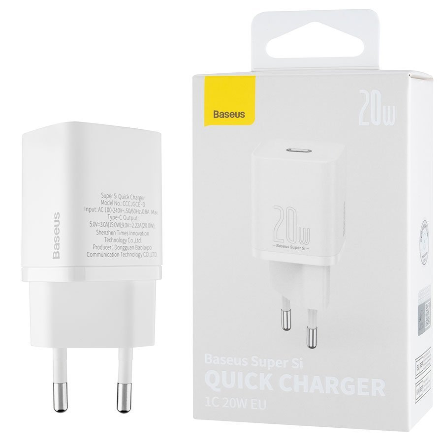 - Зарядний пристрій Baseus Super Si quick charger 1C 20W EU білий CCSUP-B02