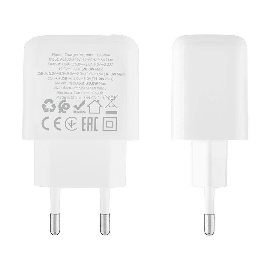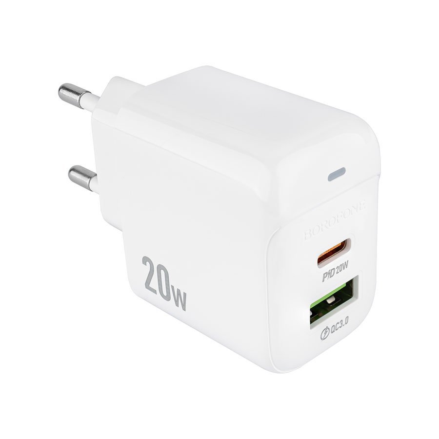 Зарядний пристрій BOROFONE BAS44A 1USB-C 1USB PD/QC 20W white 6941991113840 — практичне рішення для ефективної і безпечної зарядки смартфонів, що поєднує швидкість, компактність і гарантію якості.