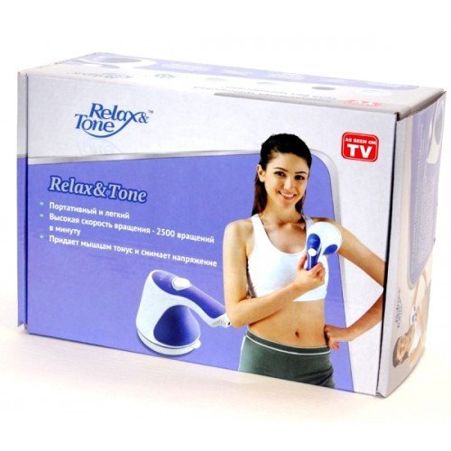 Ручний масажер Relax and Tone — антицелюлітний вібромасажер для тіла, рук та ніг з комплектом із 4 насадок. Підійде для щоденного використання вдома: допомагає виконувати комфортний вібромасаж різних зон, підтримуючи тонус і розслаблення м’язів. Якісний та надійний прилад для регулярного догляду за тілом.