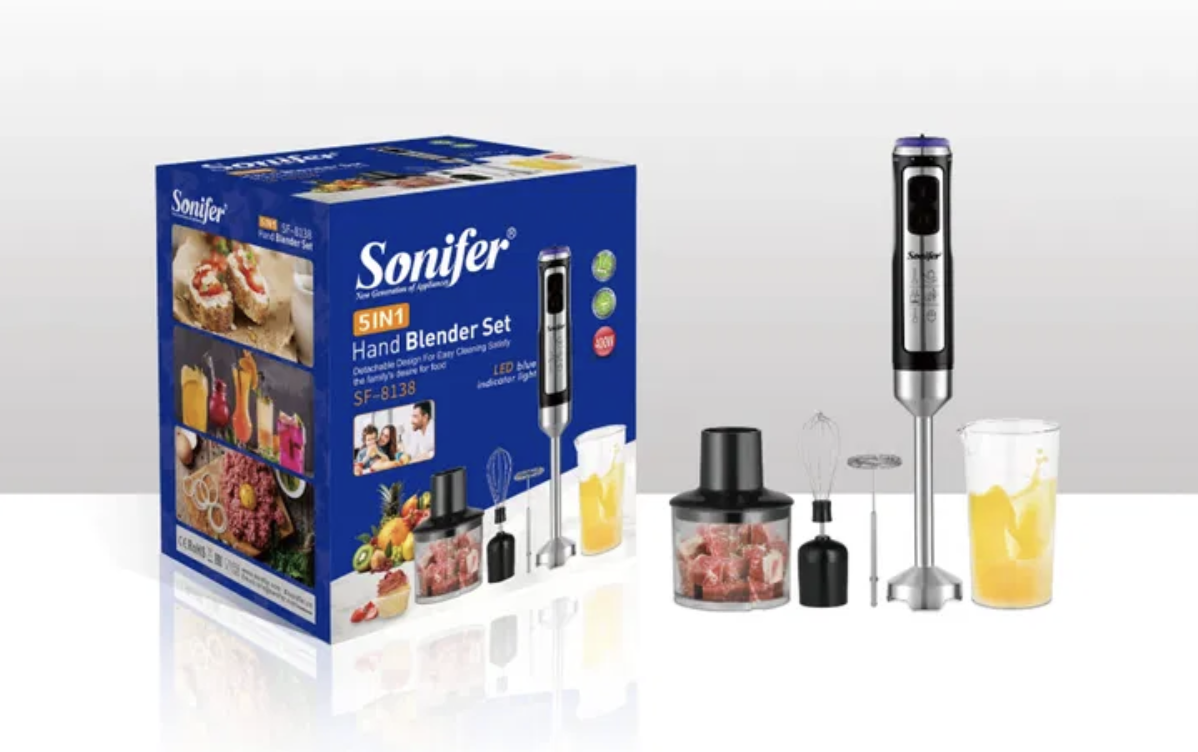 Набір ручного блендера 5 в 1 Sonifer SF-8138 — практичний багатофункціональний блендер для щоденного використання. Підійде для швидкого подрібнення, змішування та приготування різних страв вдома. Це якісний і надійний товар, розрахований на регулярну роботу на кухні.