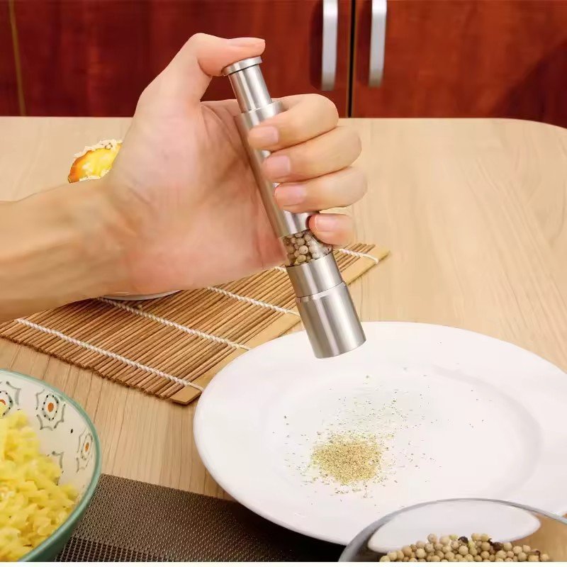 Подрібнювач солі та перцю з нержавіючої сталі XL-552 — ручний механічний млин для спецій, призначений для щоденного використання на кухні. Виготовлений з нержавіючої сталі, має міцну конструкцію та підходить для помелу солі й перцю. Практичний і надійний вибір для дому.