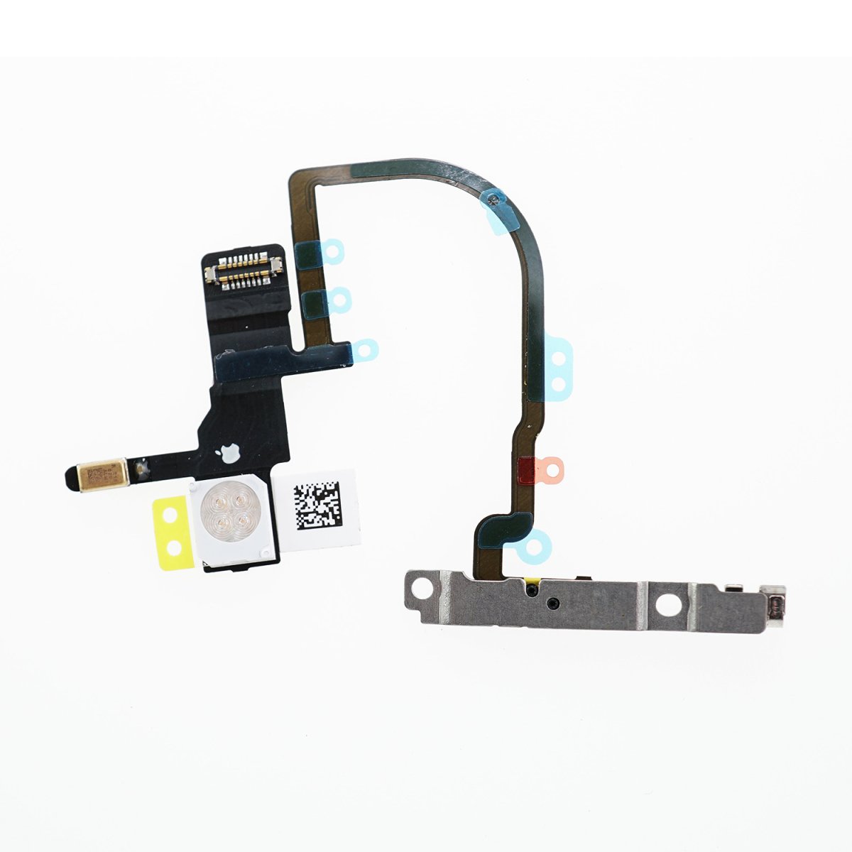 Шлейф кнопки живлення On/Off з компонентами для Apple iPhone XS — запчастина для відновлення коректної роботи кнопки живлення (увімкнення/вимкнення) на iPhone XS. Підійде для заміни зношеного або пошкодженого шлейфа, забезпечуючи стабільне щоденне використання за умови правильної установки.
