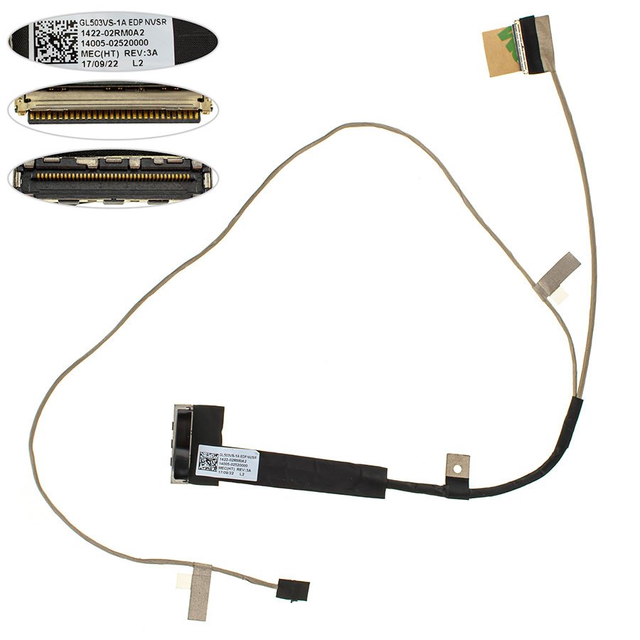 Шлейф матриці для ноутбука ASUS (GL503VS-1A), (1422-02RM0A2) — це кабель підключення дисплея, який забезпечує передачу відеосигналу між материнською платою та матрицею ноутбука. Підходить для заміни зношеного або пошкодженого шлейфа (відсутнє зображення, мерехтіння, смуги, періодичне пропадання картинки при русі кришки).