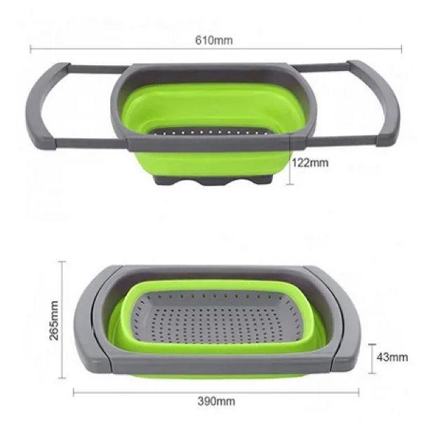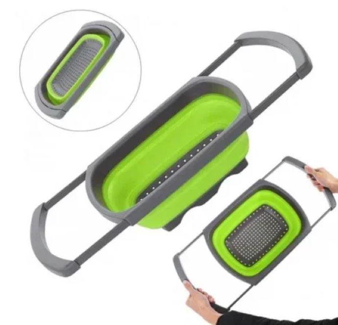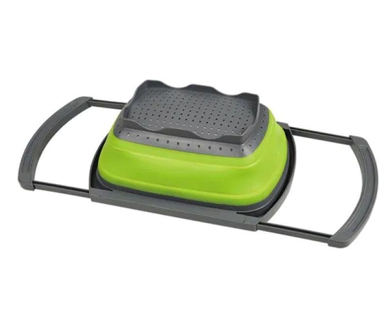 Складний силіконовий друшляк – трансформер з висувними ручками — практичний кошик для миття овочів та фруктів, який зручно використовувати щодня на кухні. Завдяки складній конструкції займає мінімум місця під час зберігання, а висувні ручки допомагають надійно утримувати друшляк під час промивання та зціджування води. Якісний і надійний аксесуар для регулярного використання.