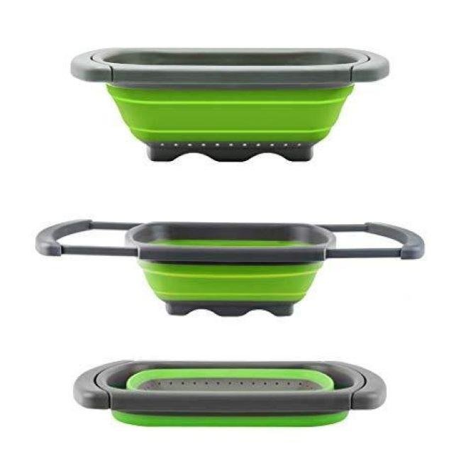 Складаний силіконовий друшляк-трансформер з висувними ручками, кошик для миття овочів і фруктів