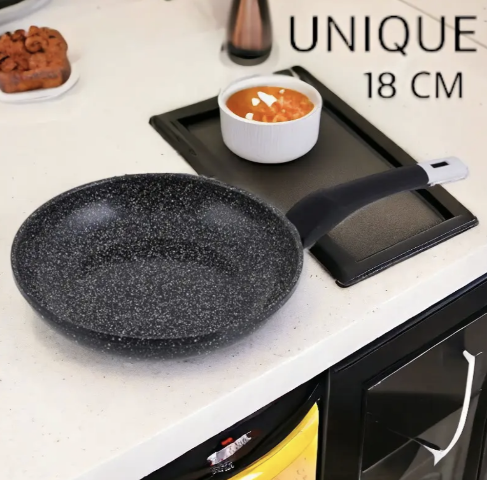 Сковорода UNIQUE UN-5132 18 см — глибока алюмінієва сковорода з антипригарним гранітним покриттям для щоденного приготування страв. Практична у використанні, зручна для смаження та тушкування, забезпечує рівномірний нагрів і легке очищення. Якісний та надійний варіант для домашньої кухні на кожен день.