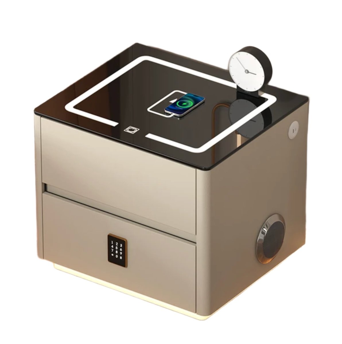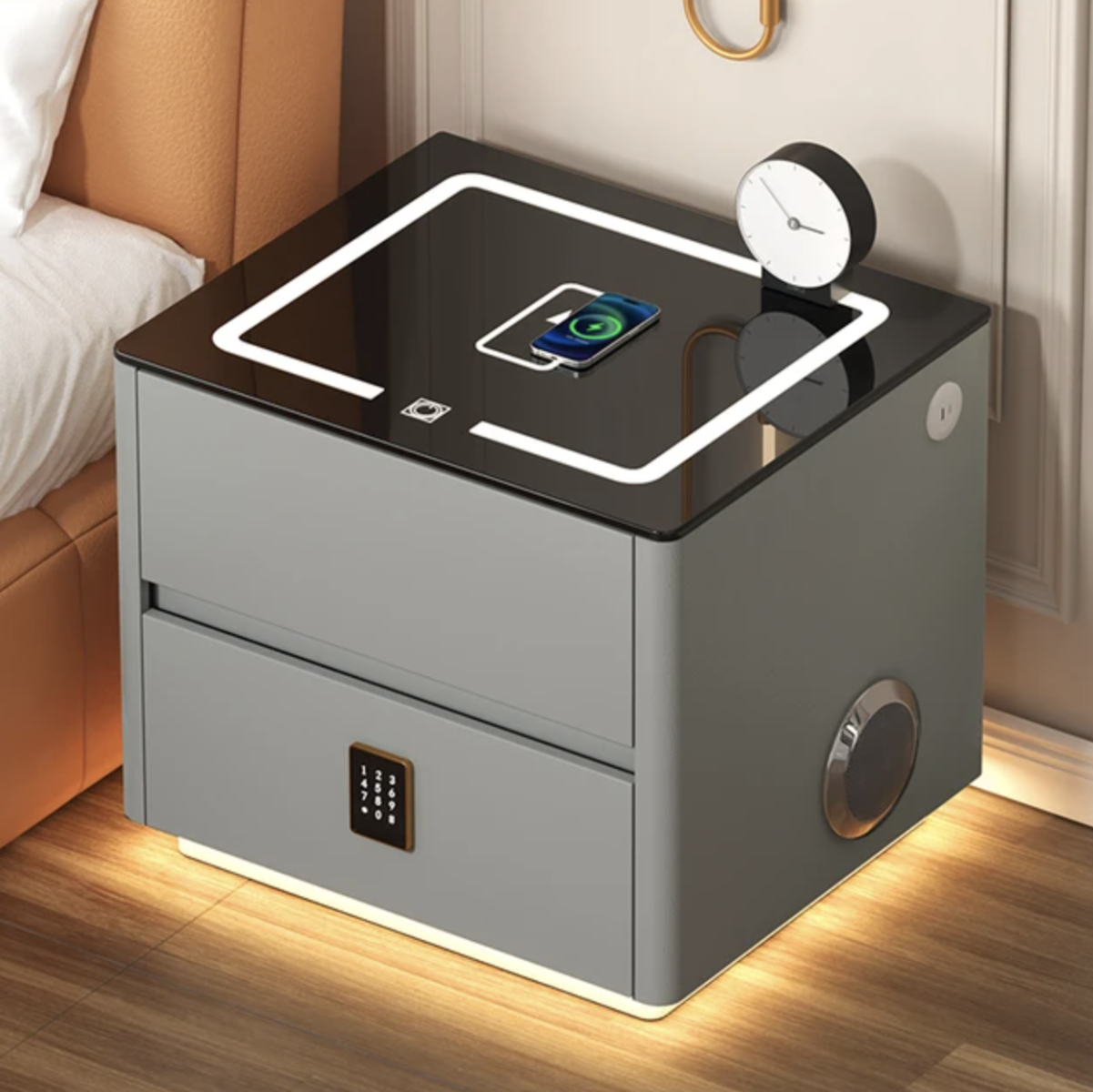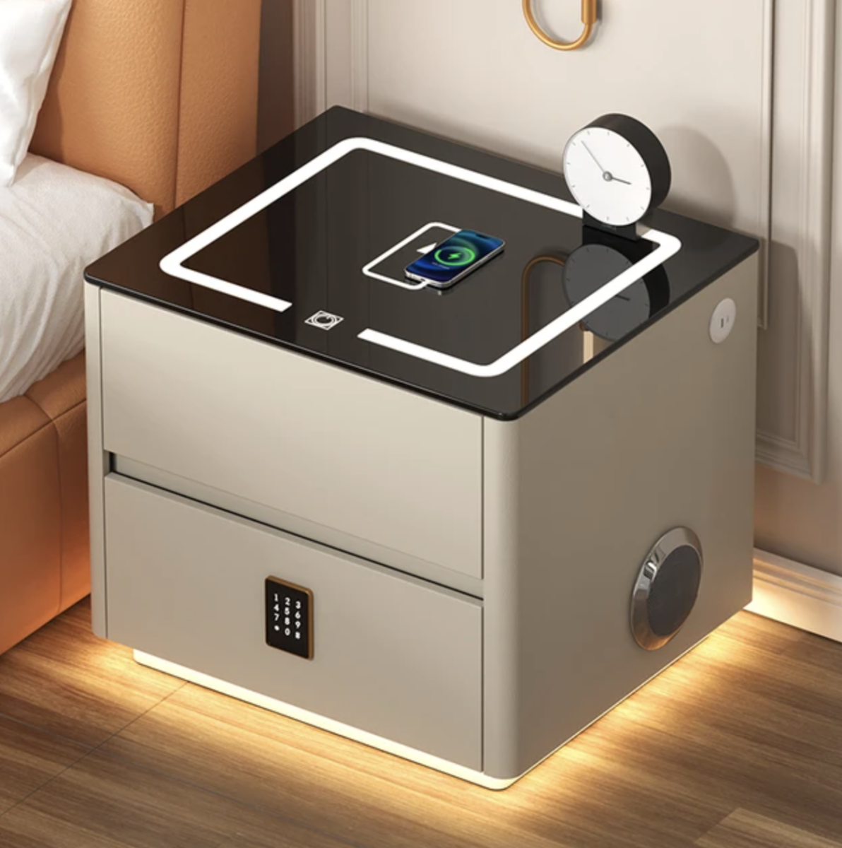 Смарт-приліжкова LED тумба QYJXF02: бездротова зарядка, Bluetooth і кодовий замок