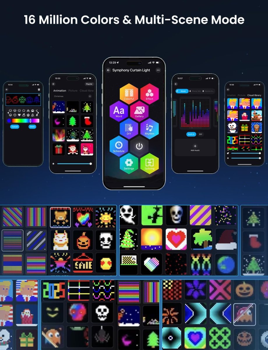 Smart LED-гірлянда-штора SFK-08 з додатком, 20 ниток × 20 LED, святкова для дому