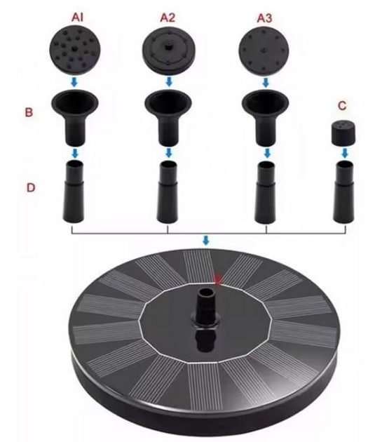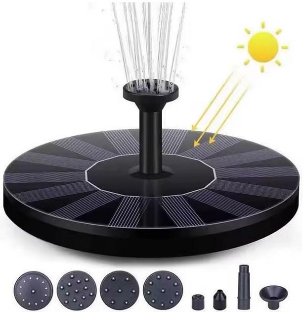 Сонячний фонтан-насос для саду з 6 насадками — екологічний та декоративний спосіб прикрасити водойму, ставок або садову ділянку. Працює від сонячної енергії та створює приємний водний ефект без підключення до електромережі.