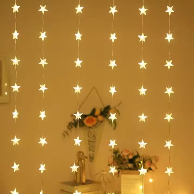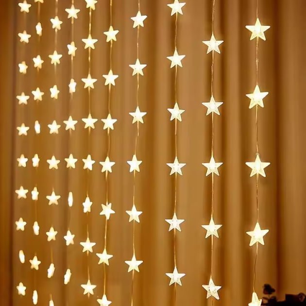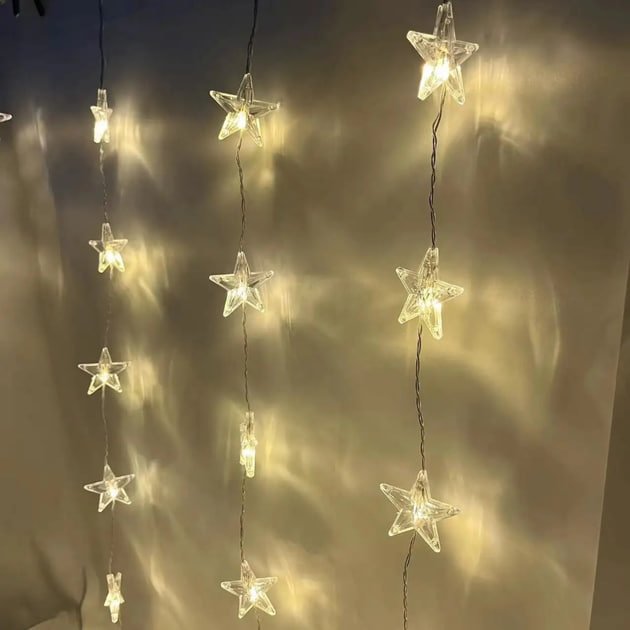 Світлодіодна гірлянда-штора «Зірки» 3×3 м, USB-живлення, тепле світло