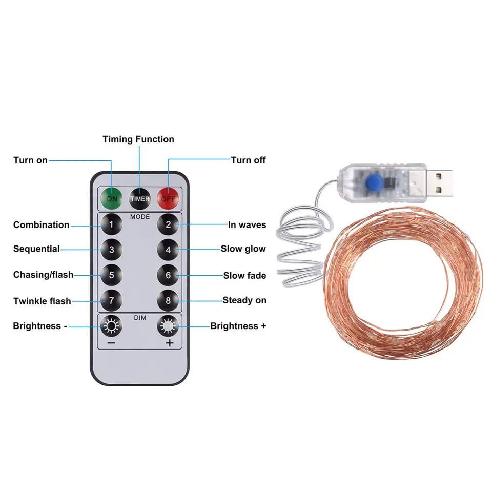 Світлодіодна гірлянда «Роса» 2 м USB, 200 LED, мідний дріт, пульт ДК (XL-76-20)