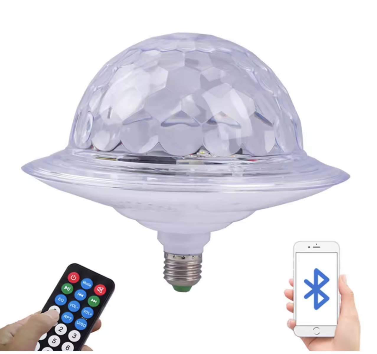 Світлодіодна обертаюча лампа RD-7202 з Bluetooth — це лампа у форматі диско-кулі з вбудованим динаміком, яка вкручується у стандартний патрон та створює яскраву атмосферу для вечірок і домашніх дискотек. Підключайте музику через Bluetooth і насолоджуйтеся світловими ефектами та звуком в одному пристрої. Модель RD-7202 виготовлена як практичний та надійний товар для щоденного використання.