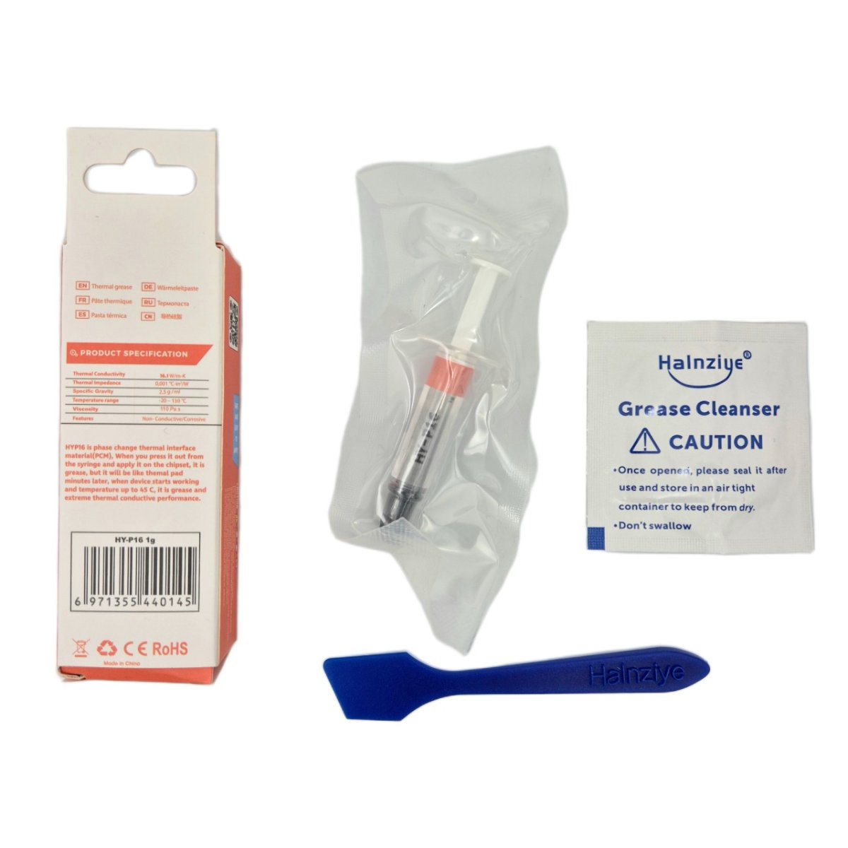 Термопаста Halnziye HY-P16 карбонова Gray — якісна та надійна термопаста для щоденного використання. Підходить для нанесення між процесором (CPU) / відеочипом (GPU) та радіатором, допомагаючи ефективно передавати тепло та підтримувати стабільну роботу системи.